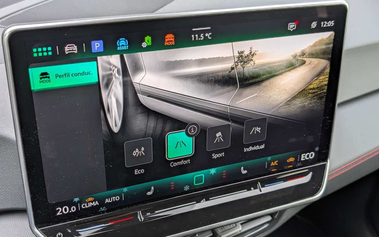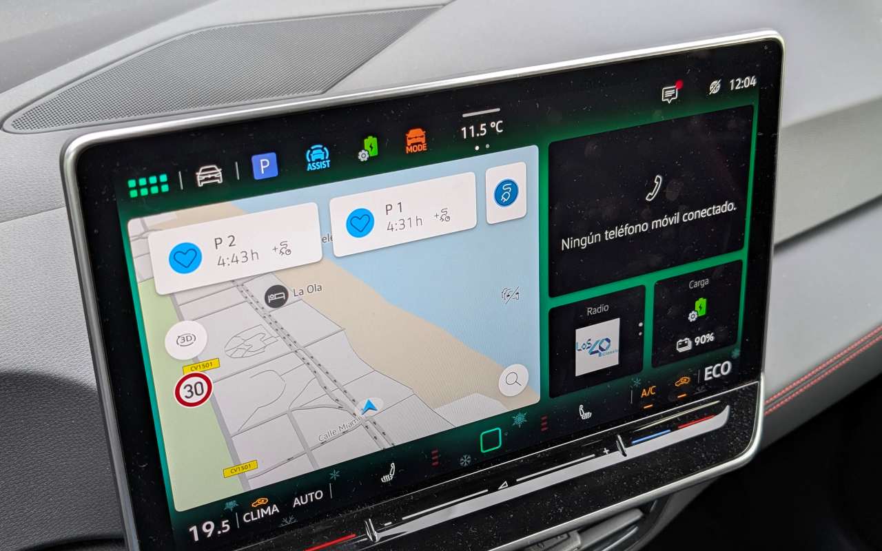 Aquí es donde el ID.3 GTX muestra el mayor salto evolutivo. El nuevo sistema de infoentretenimiento, con pantalla de 12,9 pulgadas, supone un cambio radical respecto al pasado. Los menús están mucho mejor estructurados, el sistema es más rápido y todo resulta más intuitivo, lógico y ordenado. Por fin deja de ser un elemento frustrante y se convierte en un aliado en el uso diario.