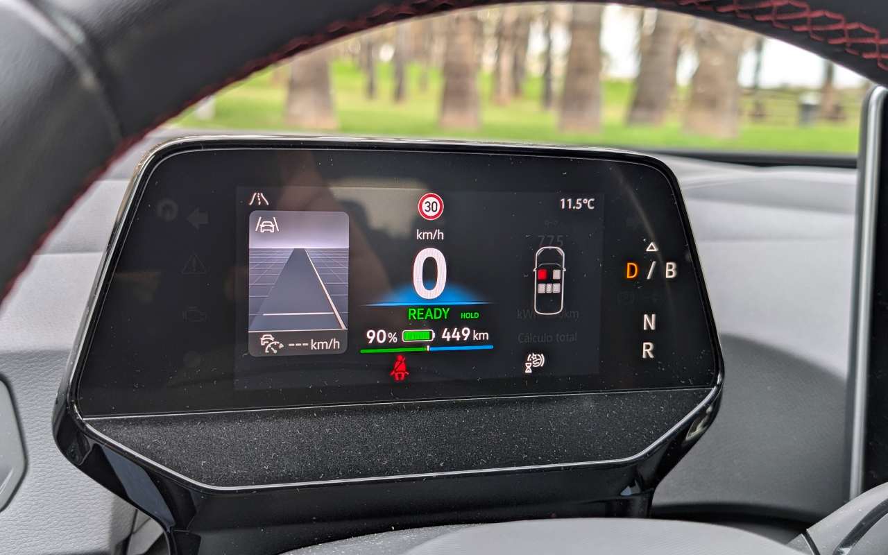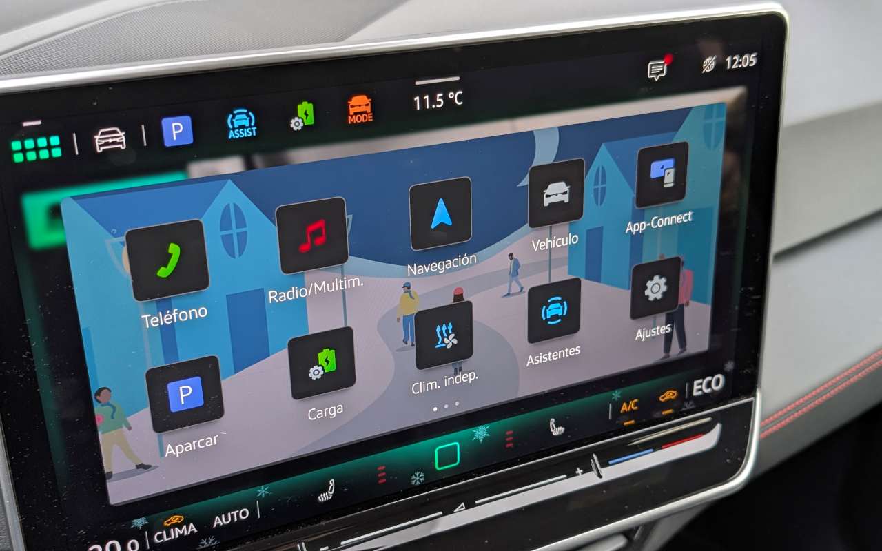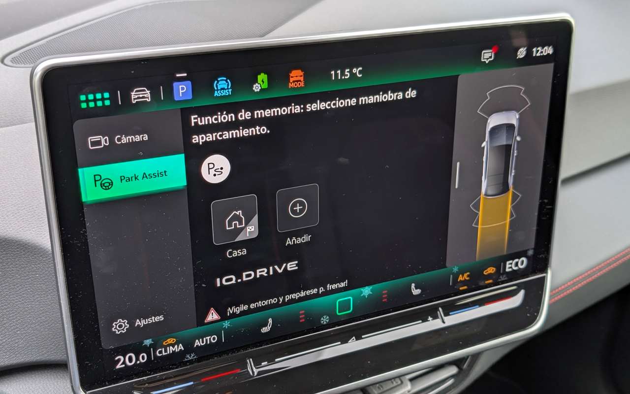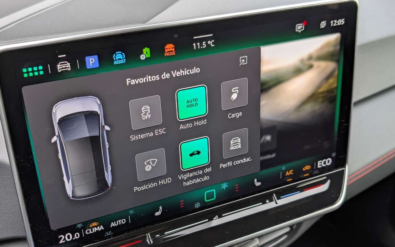 Otro aspecto claramente definitorio del ID.3 GTX es que prácticamente todo gira en torno a la pantalla central, con una ausencia notable de botones físicos. Es cierto que Volkswagen ha afinado algunos elementos: los mandos del volante, con funcionamiento táctil, están muy bien resueltos, son precisos y resultan realmente útiles una vez te acostumbras a ellos. También han mejorado los controles táctiles del climatizador, que ahora están retroiluminados, funcionan correctamente y han ganado en usabilidad frente a las primeras versiones. Aun así, seguimos echando de menos mandos físicos dedicados para funciones clave, especialmente aquellas que se usan con frecuencia durante la conducción, ya que la dependencia constante de la pantalla no siempre es la solución más práctica ni la más segura.