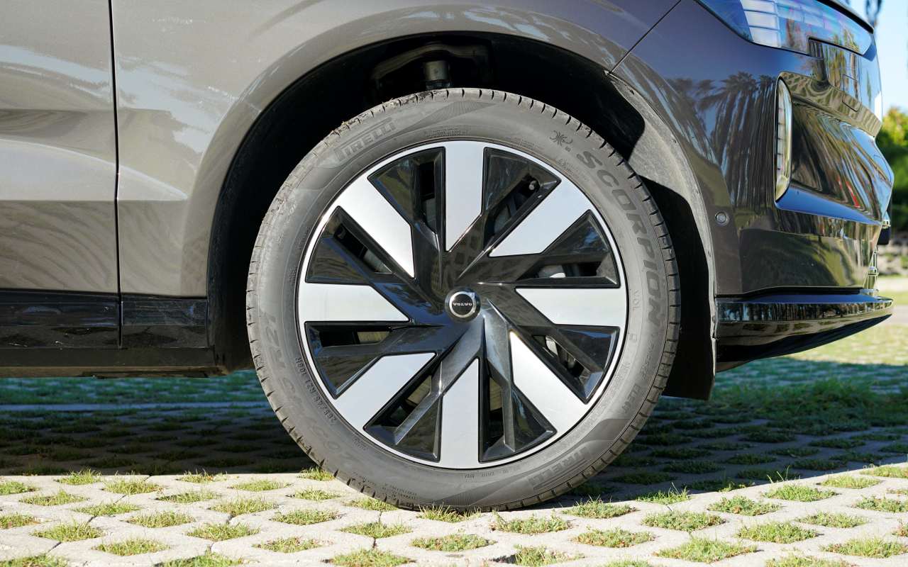 En el perfil lateral también se aprecia claramente el trabajo aerodinámico realizado por Volvo. El EX90 estrena llantas de diseño aerodinámico de 21 y 22 pulgadas. Las llanatas junto a los tiradores enrasados, son soluciones cada vez más habituales en los eléctricos, pero aquí están bien integradas y contribuyen a un coeficiente aerodinámico de solo 0,29, una cifra destacable teniendo en cuenta el tamaño y la altura del coche.