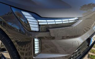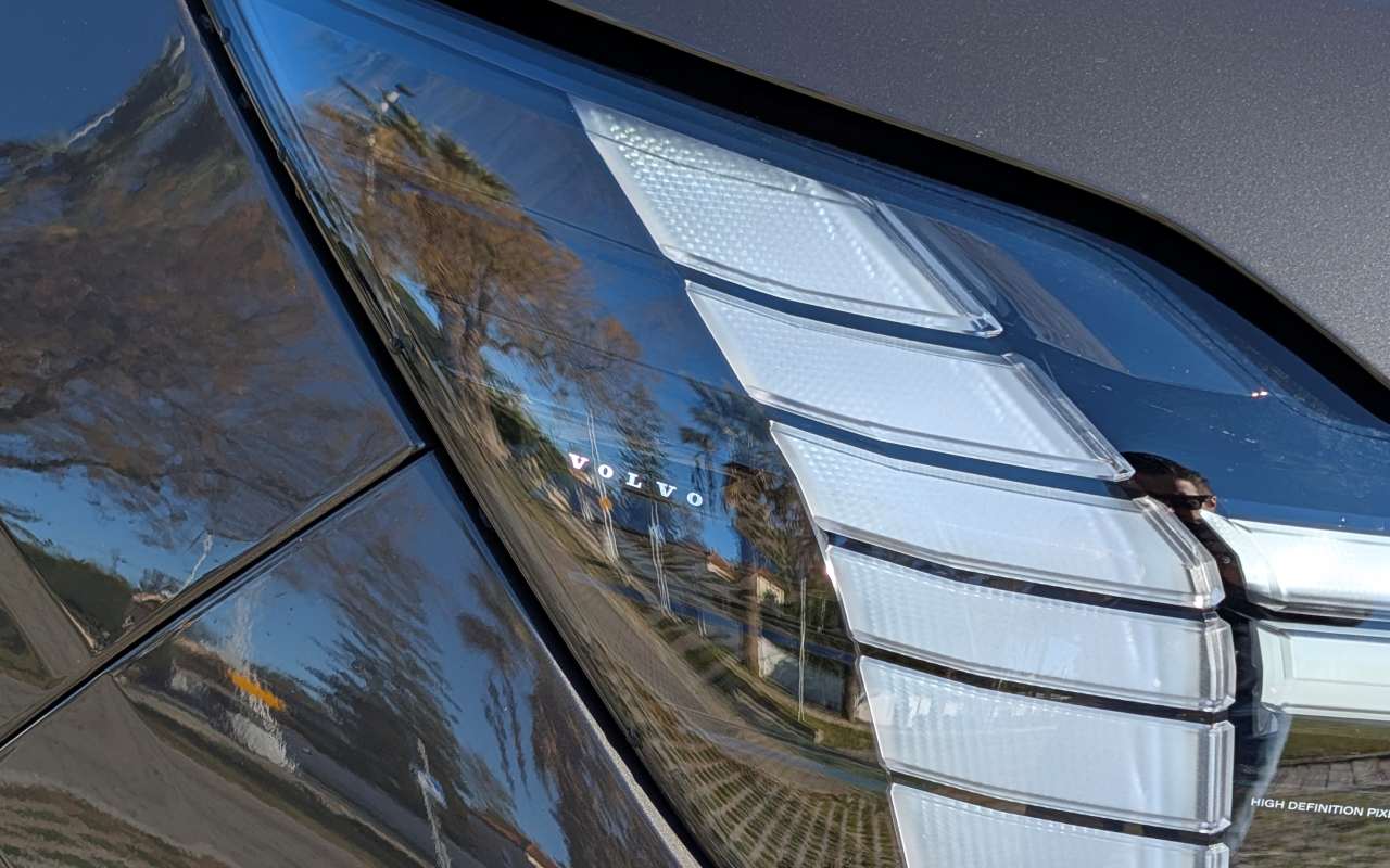 El frontal está claramente definido por los faros LED con firma “martillo de Thor”, pero aquí Volvo introduce una solución técnica tan curiosa como llamativa: las luces diurnas se abren mecánicamente para dejar al descubierto los proyectores de cruce y carretera. El resultado visual es espectacular y, además, la capacidad de iluminación es sobresaliente, tanto en alcance como en uniformidad. Este sistema tiene una pequeña contrapartida: si somos de dar ráfagas con las largas, el mecanismo necesita activarse para liberar las luces de cruce y carretera, lo que introduce un ligero retardo de unos milisegundos que resta inmediatez frente a sistemas más convencionales, igual de efectivos y seguramente, mucho más económicos.
