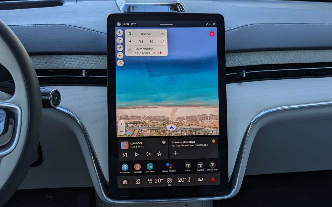 Funciona bajo Android Automotive OS, con los servicios de Google totalmente integrados de forma nativa, incluyendo Google Maps, Google Assistant y Google Play. La interfaz es limpia, bien estructurada y visualmente agradable, con menús claros y una lógica de funcionamiento bastante intuitiva una vez superado el periodo de adaptación. La respuesta táctil es rápida, las transiciones son fluidas y el sistema se apoya en una potente arquitectura electrónica que evita ralentizaciones, incluso cuando se gestionan múltiples funciones a la vez. Además, cuenta con actualizaciones remotas OTA, lo que permite mejorar funcionalidades y corregir errores sin necesidad de pasar por el concesionario.