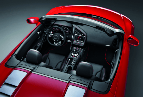 En el R8 Spyder y en el R8 V10 plus son muchas las piezas accesorias de la carrocería que se han fabricado en material plástico reforzado con fibra de carbono (CFRP). Este mismo material se emplea también en el habitáculo del modelo de máxima potencia, donde tanto conductor como acompañante ocupan asientos anatómicos con respaldos abatibles. El interior de todas las variantes del deportivo de altas prestaciones es ahora más refinado.