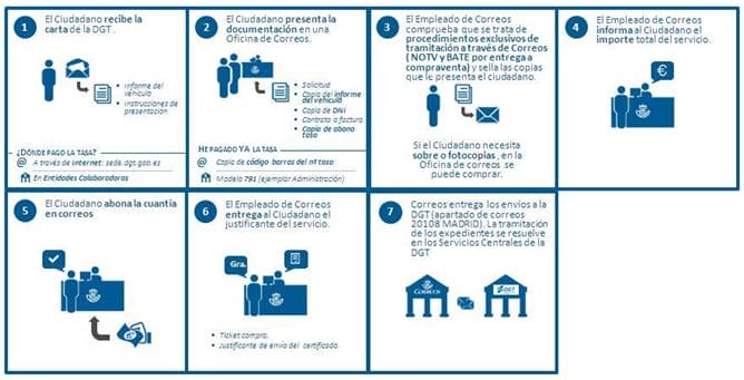 En el caso de que el ciudadano ya no sea propietario de vehículo porque lo hubiera vendido, podrá formalizar el cambio de titularidad del vehículo en las más de 8.000 oficinas de Correos que hay en España.