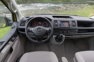 Todos los T6 California incluyen de serie un techo elevable en el que se esconde una práctica cama doble. Además la banqueta trasera se puede abatir para lograr otra cama adicional y se han incluido tomas de corriente, cajones porta-objetos y un depósito de agua para garantizar un nivel de confort elevado.